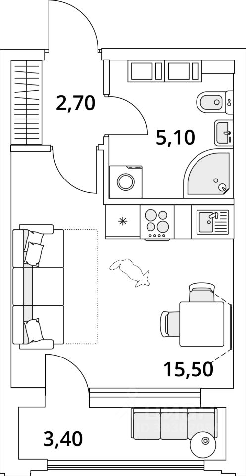 Студия, 25,3 м²