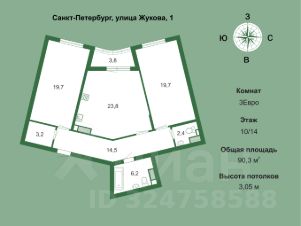 Площадь квартиры составляет 90.3 м2
