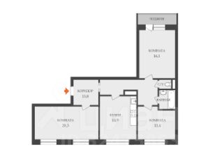 В квартире три изолированные комнаты (16.1 - 20.3 - 11.4), просторная кухня 14.9 метров, довольно высокие потолки 2.7 метра.