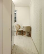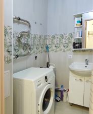Квартира небольшого метража площадью 52.2 кв.м имеет раздельные комнаты (17,2+14,5) кв.м, правильной формы кухню 9,3 кв.м, застекленная лоджия с выходом из кухни, раздельный сан.узел. Квартира в хорошем состоянии, можно заезжать и жить- все работает, ничего не отваливается, чистая, без запахов. После продажи частично остается мебель в квартире: диван, трех-створчатый шкаф, кровать, кухня с обеденным столом.