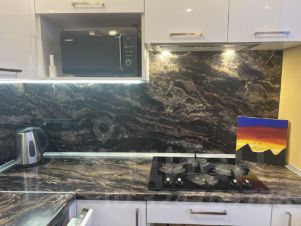 Современная встроенная кухня (механизмы Blum), варочная поверхность.