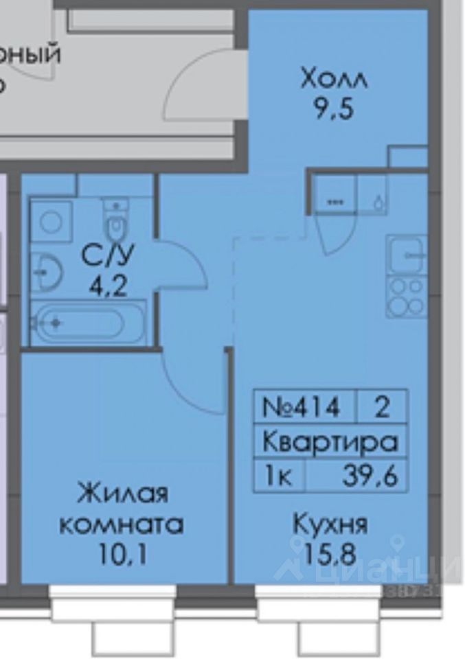 Квартира с идеальной планировкой: просторная кухня-гостиная 15,8 м², изолированная комната 10.1 м², совмещенный санузел 4.2 м², холл с гардеробной 9.5 м².