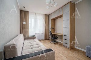 Четырехкомнатная квартира имеет гостиную совмещенную с кабинетом (24 и 15м) (возможно изолировать), 2 спальни по 14 и 17м, кухню 12.8м, большой совмещенный санузел, душ, два балкона.