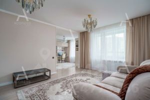 Квартира площадью 102 кв.м., расположена на 11 этаже. Квартира двухсторонняя, окна выходят во двор, с прекрасным видом на фонтан и перспективу вдаль.