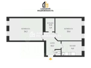 - СПАЛЬНЯ (26,2 м²) с двумя окнами, правильной прямоугольной формы и видом на улицу;