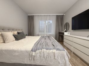 2. Просторная комната, большой совмещенный с/у и функциональная кухня-гостиная, где свободно разместился диван.