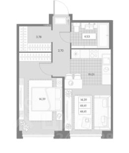 2Евро квартира 44.4 м2 на 8 этаже 3 секции ЖК Avant, корпус Klassik.
