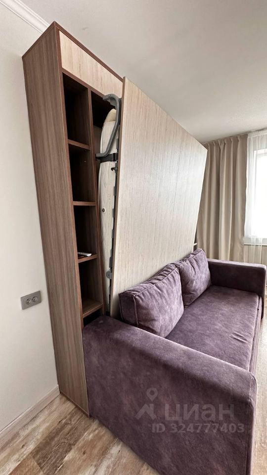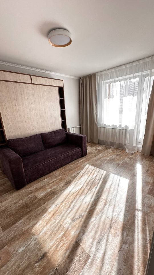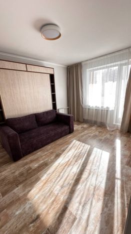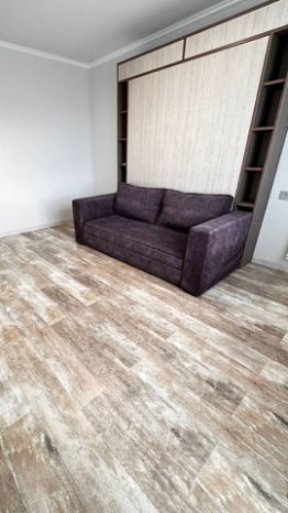 В светлой комнате расположена удобная подъемная двуспальная кровать с ортопедическим матрасом (размер 160/200), основание березовые ламели. Кровать очень легко складывается и раскладывается, постельные принадлежности при этот пристегиваются специальными ремнями, убирать их не нужно. В собранном состоянии остается уютный диван. В комнате пол выполнен из ламината 34 класса, шторы блекаут.
