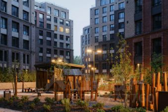 На территории "Малоохтинского, 68" будут детские площадки, тренажеры для спортивных занятий и игр, зоны для спокойного отдыха. Жилые секции асимметрично расположены на территории и окружены оазисами зелени.