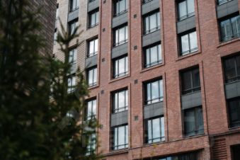 "Малоохтинский, 68" состоит из 16 секций: монолитные дома с остекленными фасадами. Главная входная группа выдержана в европейском стиле с использованием натуральных отделочных материалов. Просторные светлые вестибюли с панорамными окнами, помещение для почтовых ящиков, стойка консьержа, велосипедные и колясочные.