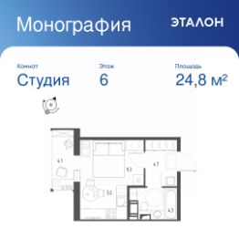Общая площадь квартиры — 24.8 кв. м, этаж 6 из 12.