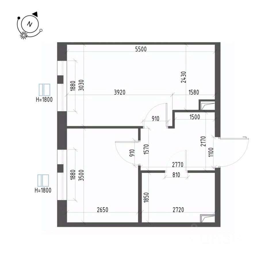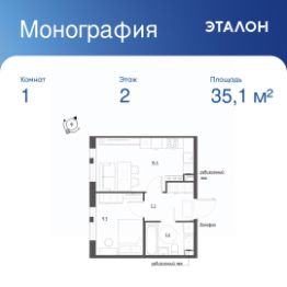 Общая площадь квартиры — 35.1 кв. м, этаж 2 из 12.