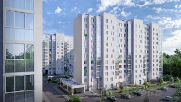 В архитектуре жилого комплекса отражены самые актуальные градостроительные тенденции. Комбинация белого цвета с яркими оттенками в оформлении фасадов, а также панорамное остекление балконов и лоджий придадут комплексу современный и стильный облик.