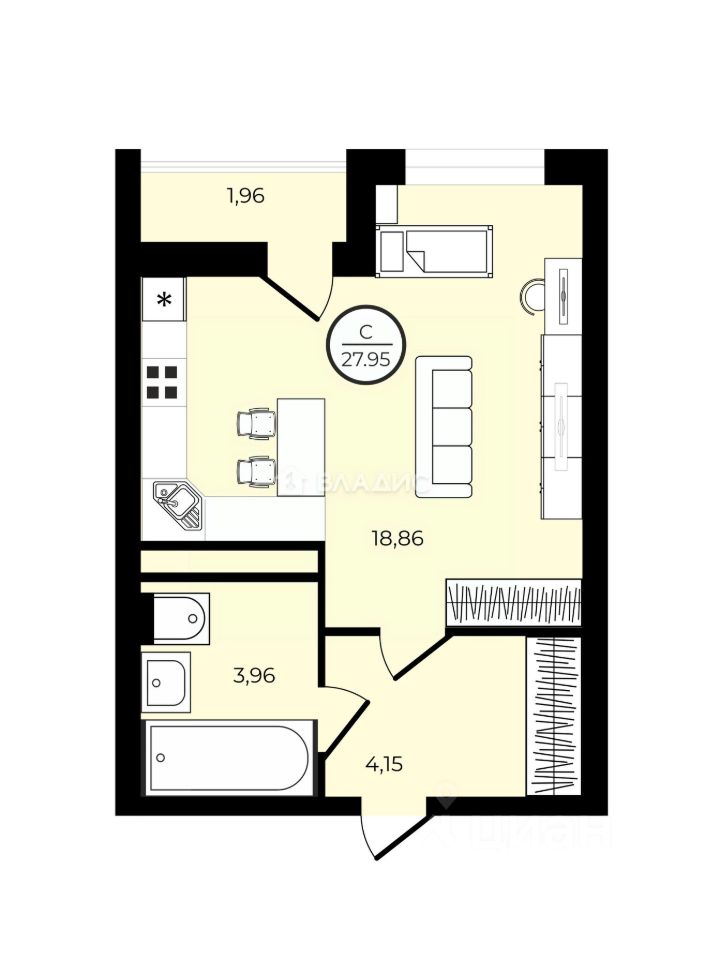 -Удобная планировка с зонированием: спальная зона расположена отдельно от кухни