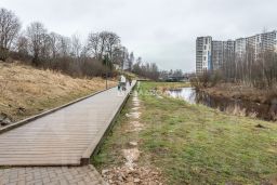 -В 10 минутах пешком благоустроенная наб. реки Охты с парковой зоной для прогулок и отдыха;