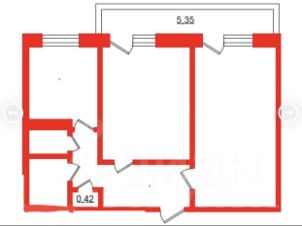 Общая площадь квартиры 42,4кв.м.+ балкон 6 кв.м
