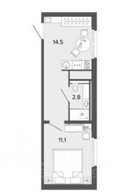 Отличная планировка с зонированием: отдельно кухня и спальня. (с двумя окнами)