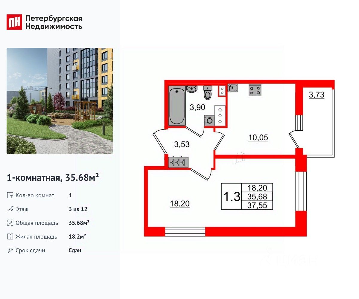 Продается просторная 1-комнатная квартира в жилом комплексе "Прайм Приморский" в динамичном Приморском районе.