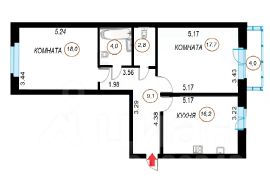 Просторная кухня-столовая, площадью 16,2 кв.м., две огромные, равнозначные по площадям спальни.