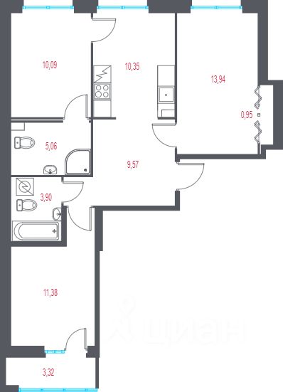 Квартира 52 в корпусе 1 от застройщика в ЖК "Город-спутник Южный"