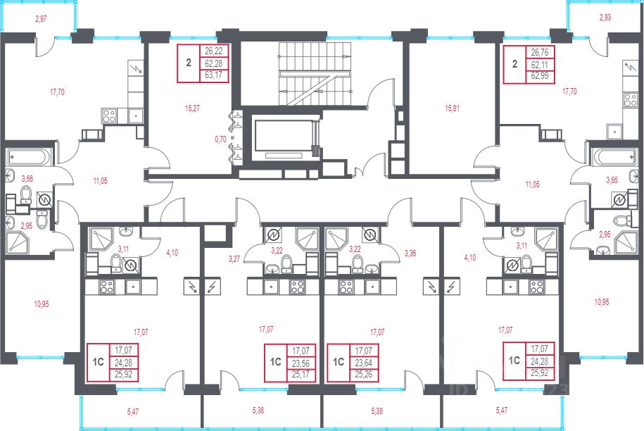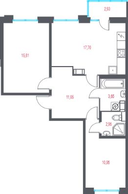 Квартира 76 в корпусе 3 от застройщика в ЖК "Город-спутник Южный"