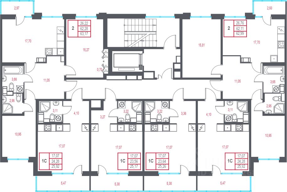 Квартира 59 в корпусе 3 от застройщика в ЖК "Город-спутник Южный"