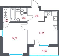 Квартира 62 в корпусе от застройщика в ЖК "Город-спутник Южный"