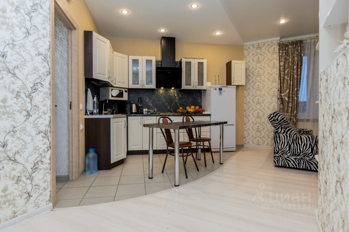 Квартира очень светлая с огромной 4-х метровой, застеклённой лоджией. Комната разделена на две части, одна из которых используется как спальня, а другая как кухня-гостиная. Общая площадь квартиры 43,2 ка.метра, жилая комната —30 кв.м. Санузел большой, совмещенный. Квартира продается с бытовой техникой (стиральная машина-автомат, двухкамерный холодильник, СВЧ печь, электрическая плита с духовым шкафом, мощная вытяжка). В ванной и в зоне кухни установлена система теплый пол.