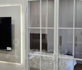 Продуманная и эргономичная планировка включающая изолированную спальню с панорамным окном и видом на тихий двор, просторную кухню-гостиную с диваном и телевизором, а также рабочую зону с большим письменным столом.