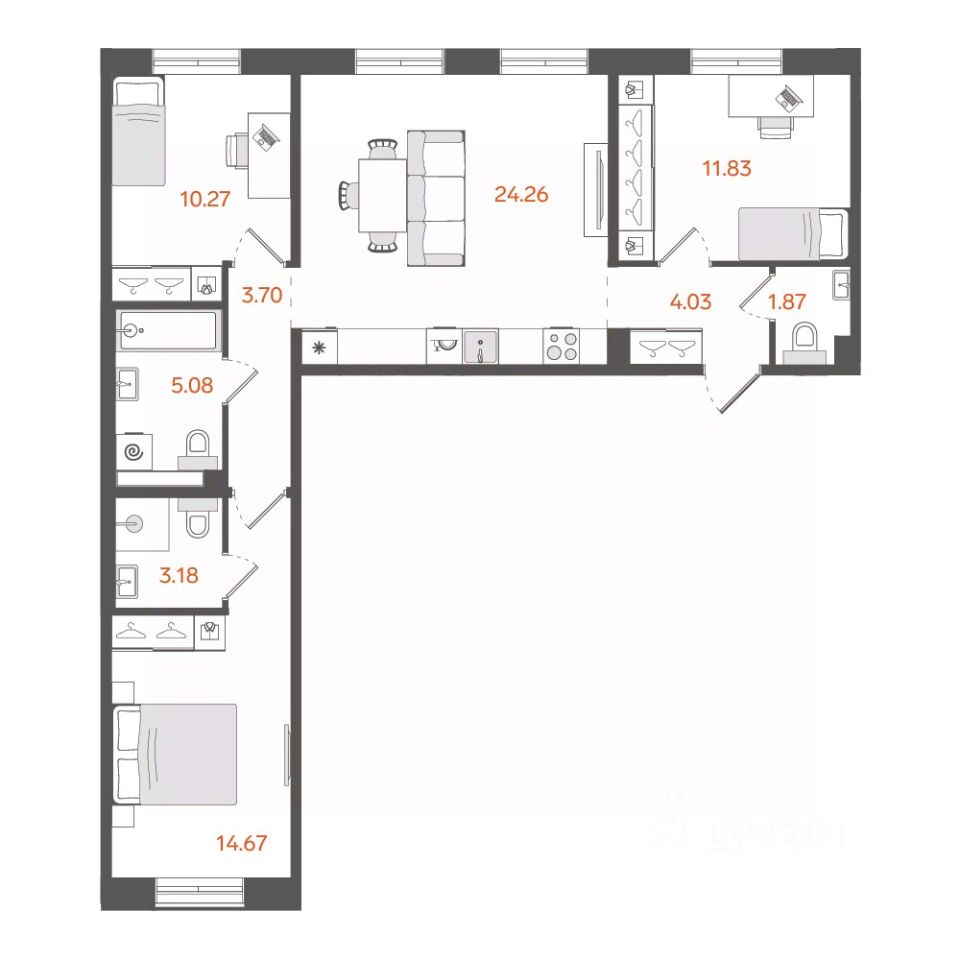 24,3 м²
