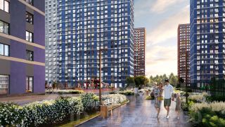 Между корпусами расположены спортивные и детские площадки, пешеходный бульвар. В квартире выполнена полная отделка "Comfort Wood" из качественных материалов: прочный ламинат цвета благородного дуба, фактурные белые обои, керамическая плитка в ванной.
