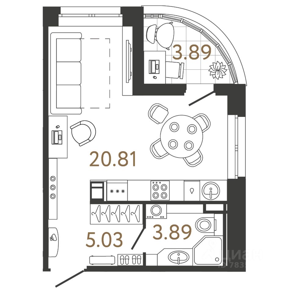 Жилая площадь20,6 м²