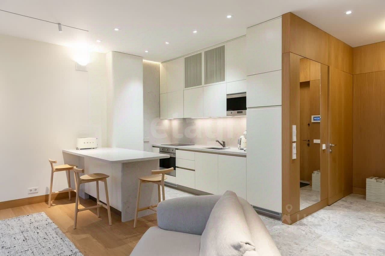 Ключевой особенностью является просторная кухня-гостиная площадью 34,1 кв. м, объединенная с зоной отдыха и оформленная по дизайн-проекту архитектора Валерия Ларионова. Высота потолков 3 метра, установлены деревянные окна с системами микропроветривания и кондиционирования.