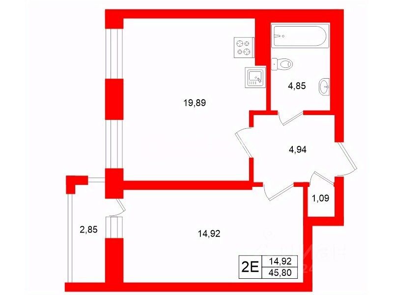 Номер объявления: 20739 - назовите его оператору. 1 комнатная квартира в ЖК "Дом на Набережной". Планировка 2 Е в престижном жилом комплексе высокого комфорт класса.