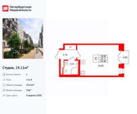 Удобная, классическая, функциональная европланировка, вместительная прихожая 3.1 м². Общая площадь студии - 24.11 м², жилая 18 м², высота потолка 2.7 м.