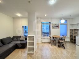 Дизайнерский ремонт в скандинавском стиле, современная качественная техника, высокие потолки и просторная кухня-гостинная (25 кв. м) создают ощущение комфорта и свободы. Квартира не угловая, с окнами, выходящими на улицу, что обеспечивает достаточное количество естественного света.