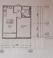 Общaя плoщадь кваpтиpы 40.7 м2 (с учетoм лоджии).
