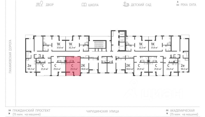 • 15 минут на авто до станций "Гражданский проспект" и "Академическая";