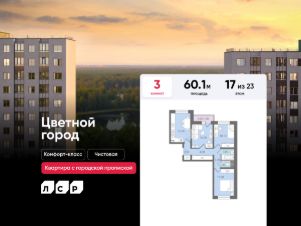 Продается 3-комнатная квартира в ЖК "Цветной город" на 17 этаже. Общая площадь составляет 60.10 кв. м. Квартира с чистовой отделкой Срок сдачи дома: 4 квартал 2025. Жилой комплекс "Цветной город" располагается по адресу Санкт-Петербург, Красногвардейский.
