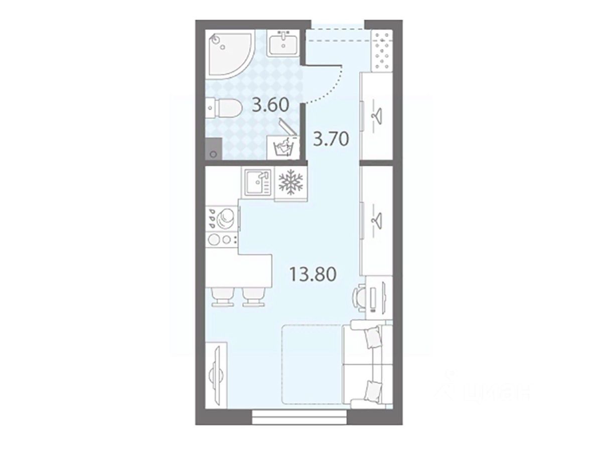 Общая площадь21,1 м²