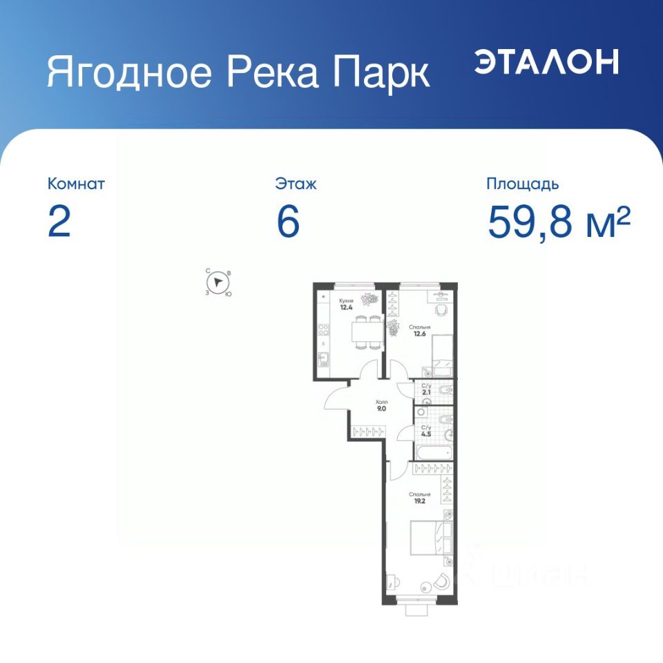 Продается 2-к квартира без отделки в ЖК "Ягодное Река Парк".