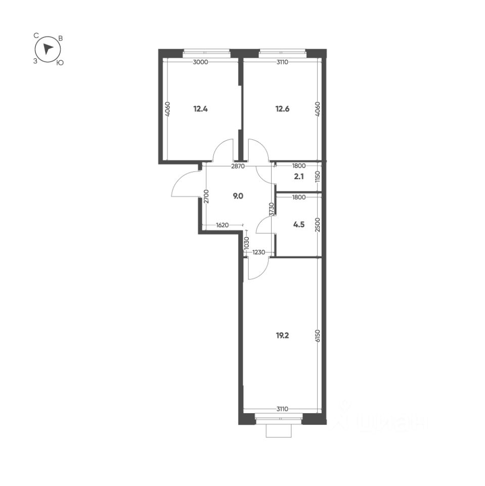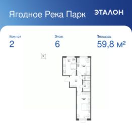Общая площадь квартиры — 59.8 кв. м, этаж 6 из 12.