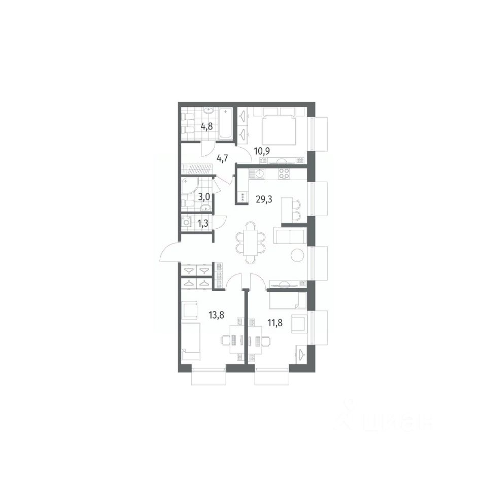 Продается квартира площадью 83.2 м²