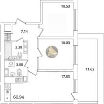 Срочно продаётся 3Е-квартира с двумя спальнями общей площадью 60,94 м2. в Калининском районе Санкт-Петербурга. Квартира находится в доме комфорт-класса в районе с развитой инфраструктурой. Идеальная квартира для комфортной жизни в окружении парков.