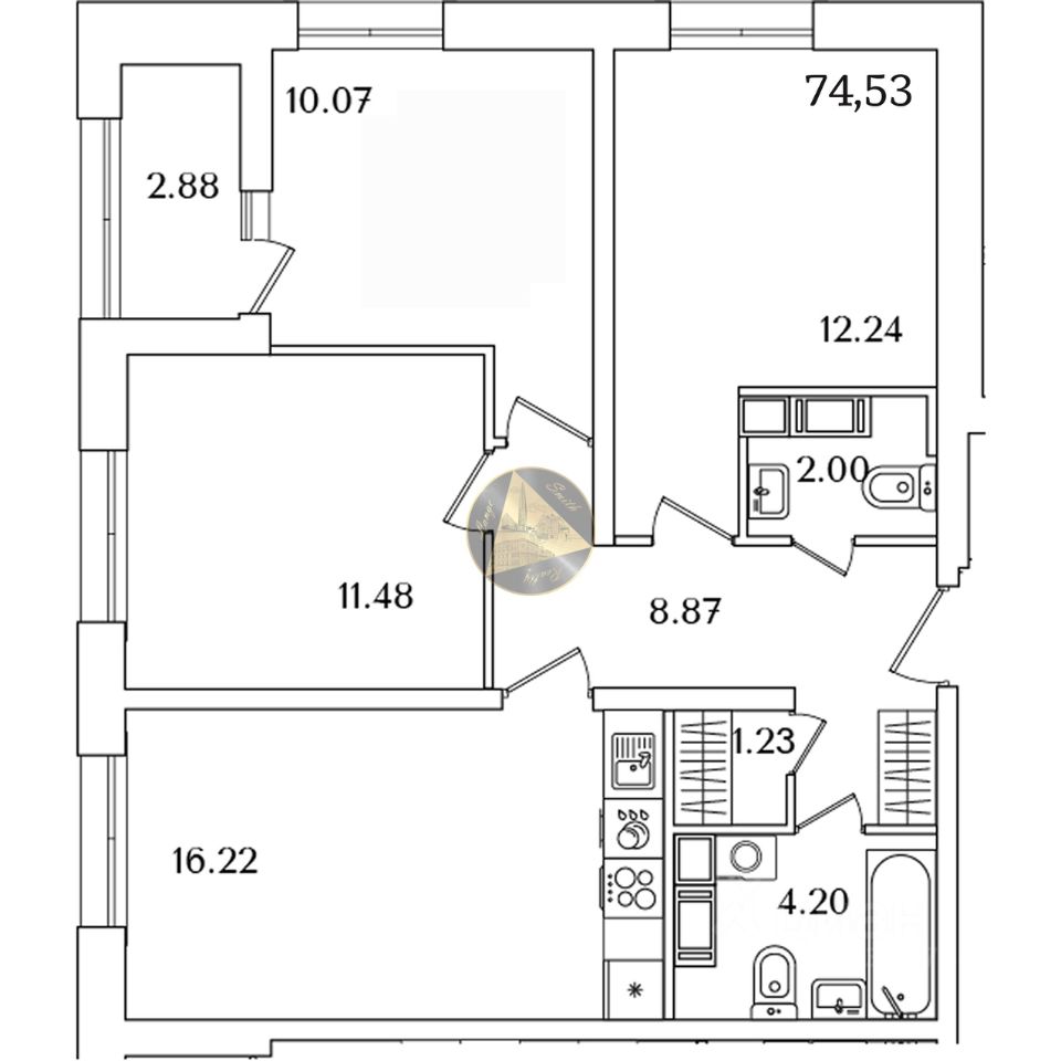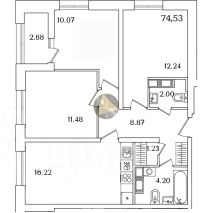 - Общая площадь квартиры 74.53 м2