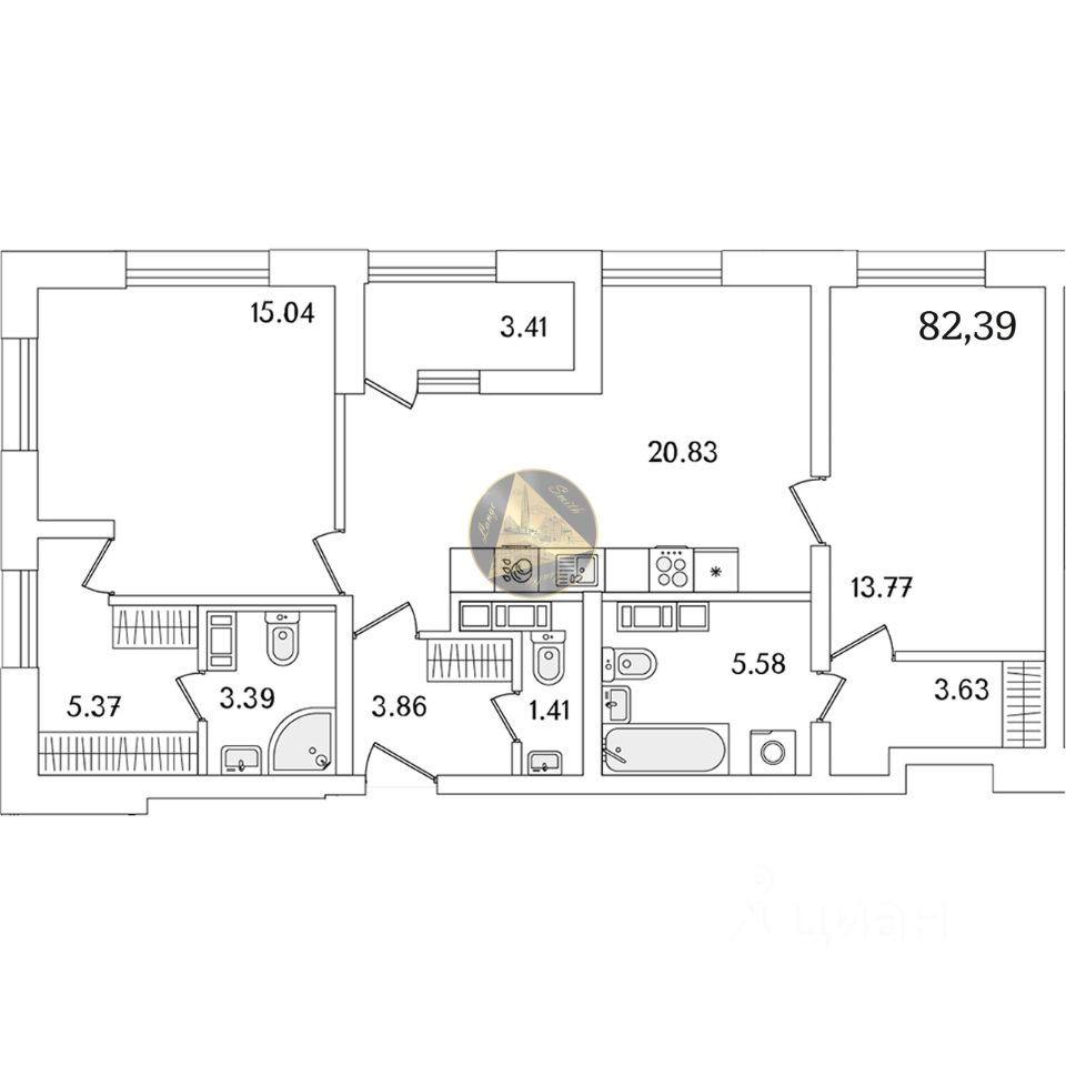Срочно продаётся 3Е-квартира с двумя спальнями общей площадью 82.39 м2. в Калининском районе Санкт-Петербурга. Квартира находится в доме комфорт-класса в районе с развитой инфраструктурой. Идеальная квартира для комфортной жизни в окружении парков.