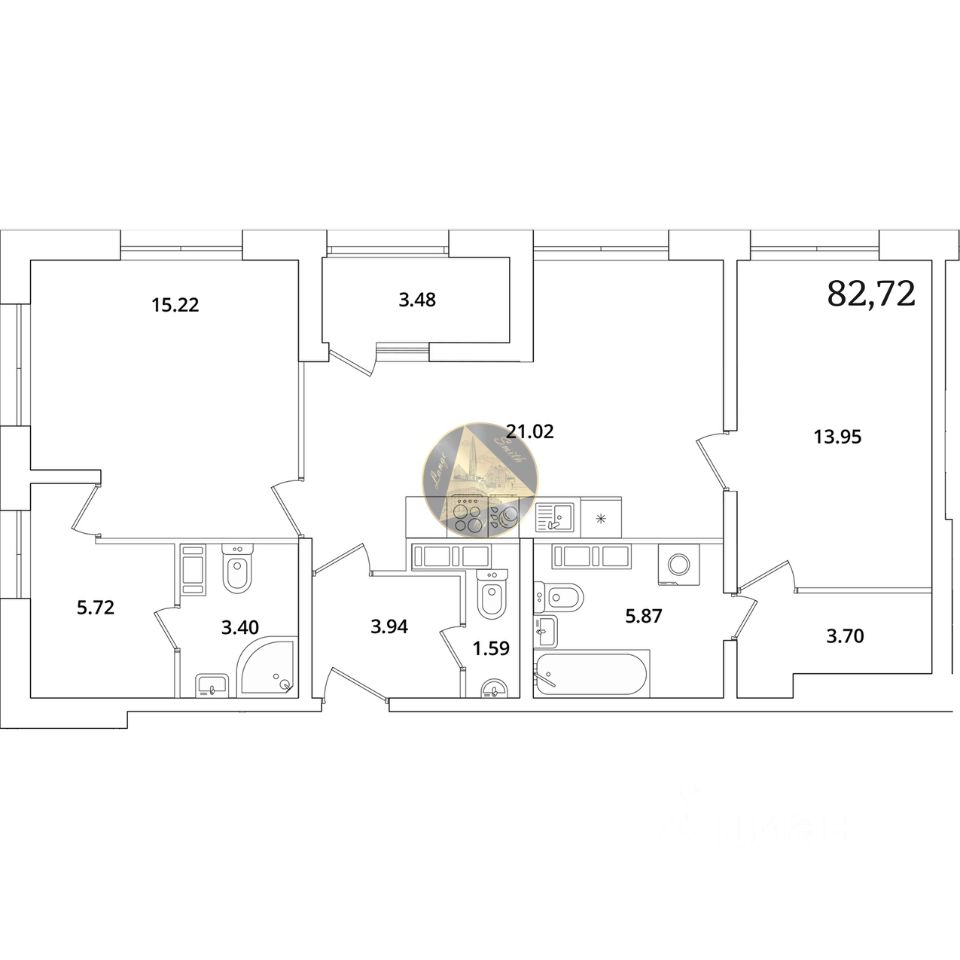 Срочно продаётся 3Е-квартира с двумя спальнями общей площадью 82.72 м2. в Калининском районе Санкт-Петербурга. Квартира находится в доме комфорт-класса в районе с развитой инфраструктурой. Идеальная квартира для комфортной жизни в окружении парков.