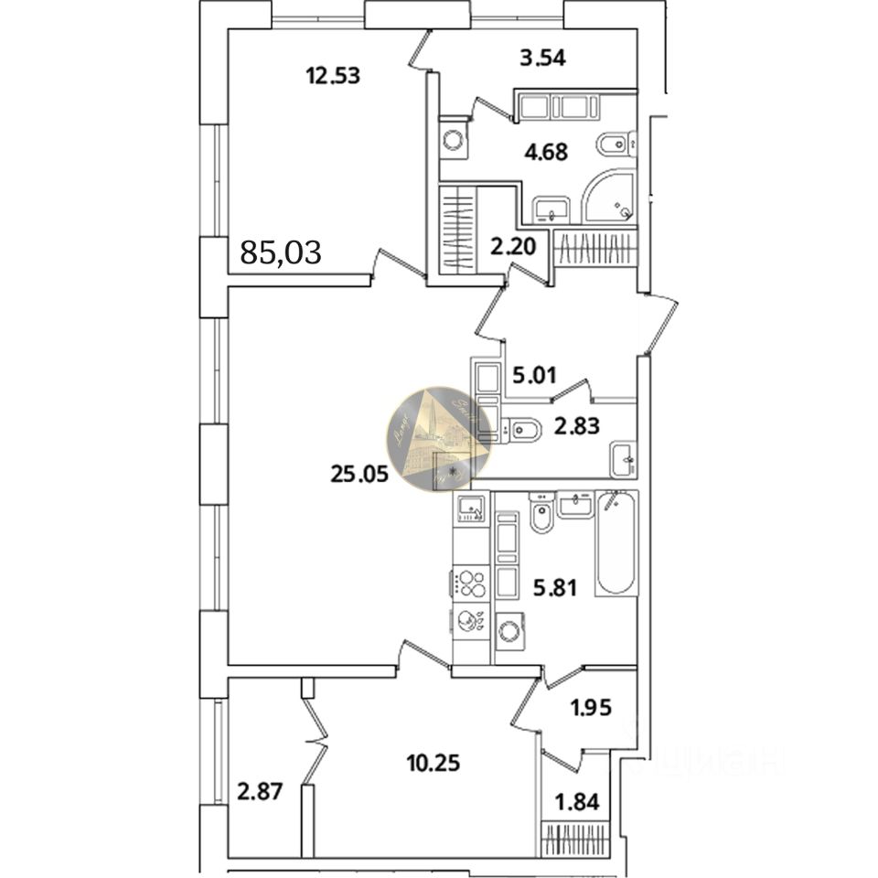 - Общая площадь квартиры 85.03 м2