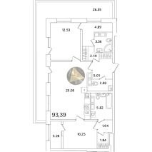 Срочно продаётся 3Е-квартира с двумя спальнями общей площадью 93,39 м2. в Калининском районе Санкт-Петербурга. Квартира находится в доме комфорт-класса в районе с развитой инфраструктурой. Идеальная квартира для комфортной жизни в окружении парков.