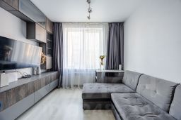 Что входит в стоимость? Вся качественная мебель, собранная в едином стиле, встроенная и отдельная техника (холодильник, посудомойка, плита, СВЧ, TV, кондиционер и др.).